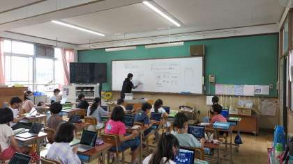 4年生では,理科で電池の働きについて学習しています。今日は,これまで学習してきたことをロイロノートの思考ツール(クラゲチャート)を使ってまとめ,先生に報告をする学習をしていました。GIGA端末でいろいろな学習にチャレンジしていますね。