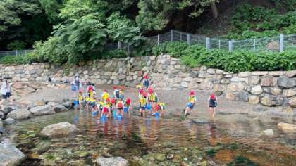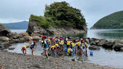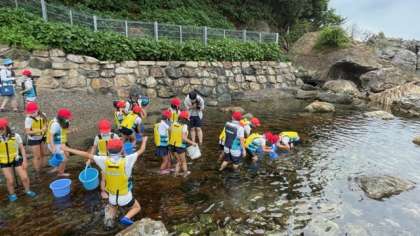 昨日予定していた磯観察を行いました。最初は恐る恐る海に入る様子もありましたが、しばらくすると夢中で海の中の生き物観察をしていました。