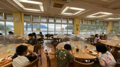 楽しかった体験活動が終わり、最後の夕食です。西の空には美しい夕焼け空が広がっています。素敵な自然を見ながら最高の夕食となりました。