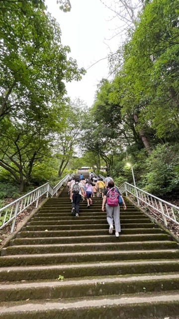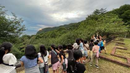 きれいな星空を観察する予定でしたが、あいにくの曇り空のため夜の散歩に出かけました。夕日の広場からきれいな夕焼けを見ることができました。