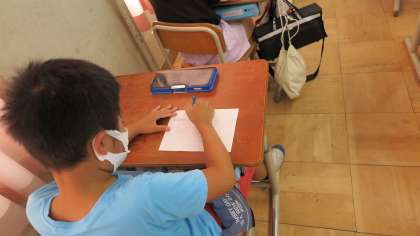 3年生は,同じ京都市にある大将軍小学校の3年生から送られてきたビデオレターを鑑賞しました。そこには,地域の調べ学習の様子がまとめられていました。どうしてそのことを調べようと思ったのか,どのように調べを進めていったかなど,みんなの学習にも役立てることができそうなことを教えてもらうことができました。鑑賞した後は,みんなでお礼のお手紙を書きました。大将軍小学校の3年生の皆さん,素敵なビデオをありがとうございました。