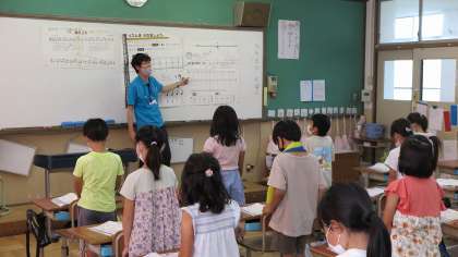 2年生は、音楽『リズムをかさねて 楽しもう』の学習をしています。今日は、「この空とぼう」の範唱を聞いて、みんなで歌う練習をしていました。これから曲に合わせて2拍子のリズムに合うように歌や演奏をする予定です。