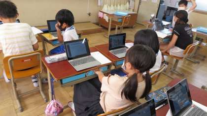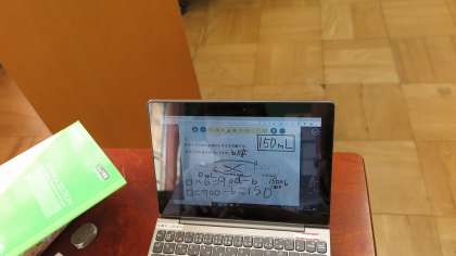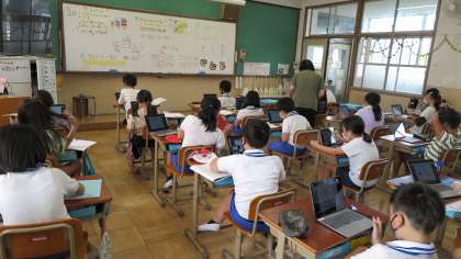 4年生は、算数「割合」の学習をしていました。2つの数量を比べる際に割合を用いることを知るとともに、数直線図や関係図を使って数量を比較しながら割合を求めていきます。2つの数量の関係を説明する際にGIGA端末を活用しながら自分の考えを友達に伝えていました。