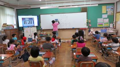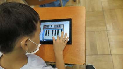 1年生は、音楽の学習をしていました。2学期からは、楽しみにしてた鍵盤ハーモニカの練習が始まります。今日は、その第一弾です。鍵盤ハーモニカの使い方や指使いをGIGA端末を使って練習しました。指に番号を振りあて、番号に合わせて指を動かす練習です。ドレミファソと順番に音が出でるとみんな大喜びしていました。本物の鍵盤ハーモニカの練習がますます楽しみになりましたね。
