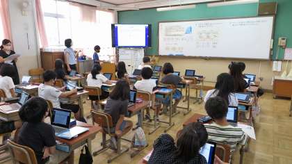 4年生では、6時間目に校内研究授業研修が行われました。今日の算数はいつもと違い、たくさんの学校の先生方に見ていただていただき、少し緊張気味な子ども達でした。授業が始まるとこれまで学習してきたことを思い出しながら、集中して授業に参加することができました。自分の考えをGIGA端末にまとめ、友達にしっかりと説明することができています。
