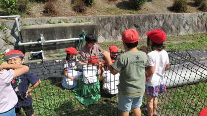 今日は、気温がぐんぐん上がり真夏のような暑い日となりましたが、中間休みには、たくさんの子ども達が、元気よく運動場で遊んでいました。また、今日は久しぶりにウサギのチョコちゃんとのふれあいが行われました。