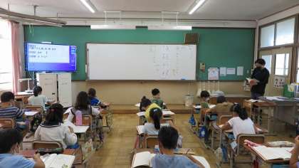 3年生は、国語「へんとつくり」の学習をしていました。「ごんべん」が付く漢字を教科書から探してノートに書き写しています。漢字の「へん」や「つくり」について調べると面白いですね。みんな興味を持ちながらが学習に参加していました。