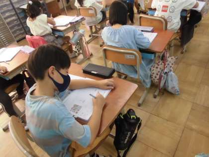 国語の時間に、漢字の練習をしました。2年生になって覚えた漢字も増え、習った漢字を使った文章を一生懸命考えていました。ひとつひとつていねいに書くことで、画数の多い漢字も習得しています。