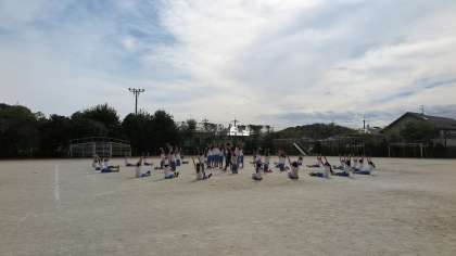 5・6年生が、来週の運動会に向けて最後の仕上げの練習を行っていました。まだまだ完成した演技にはなっていませんが、高学年としてのプライドを持ちながら頑張っている姿には感動させられます。あと数回の練習ですが、心を一つに最高の演技を目指して頑張ってほしいと思います。