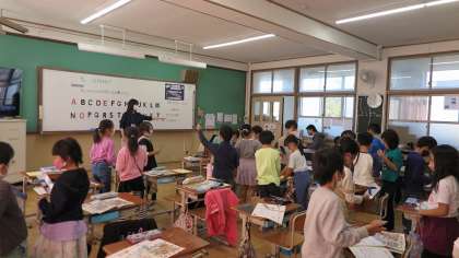 3年生は外国語活動の時間にアルファベットの学習をしています。先生と一緒に発音の練習をしたり、アルファベットを使ったカードゲームを楽しんだりしました。楽しく活動しながらアルファベットを覚えています。
