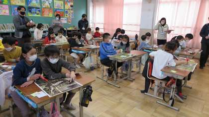 3 年生の教室で校内研究授業が行われました。図画工作科「小さな自分のお気に入り」の学習に取り組みました。たくさんの先生見てもらうことで緊張気味でしたが、学習が始まるとペアグループでどんな作品にするか真剣な表情で話し合うことができていました。3年生の頑張っている姿をたくさんの先生に見てもらうことができました。