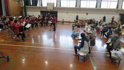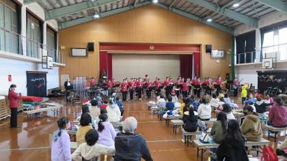 北醍醐小学校にてPTA主催のクリスマスコンサートが行われました。京都橘大学吹奏楽部の皆様をお迎えして、素敵なクリスマスにぴったりの演奏を聴かせていただきました。