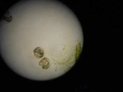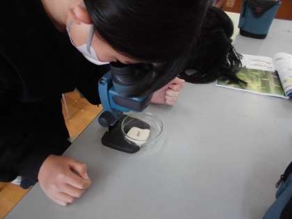 条件を変えて、種が発芽するかを調べていますが、発芽するまでの間に、メダカを育ち方について調べました。卵の中で育っていく様子を、教科書で確かめた後で、今、産まれている卵を実態顕微鏡で観察しました。心臓が動いていることに感動していました。