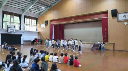 4年生は、大すきなジャンボリーミッキーの曲に合わせて入場し、クイズやお笑い、歌をプレゼントしてくれました。