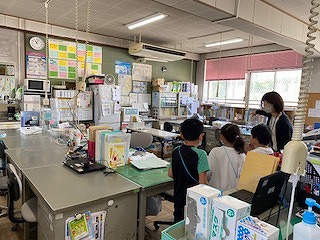 1年生に校内を案内しました。2〜3人組になって校内の教室をまわりました。自分たちの作った教室案内カードを読んだり,実際に教室に入って丁寧に説明をしたりする姿が頼もしかったです。案内が終わった後には手作りのメダルを1年生にプレゼントし,喜んでもらえました。