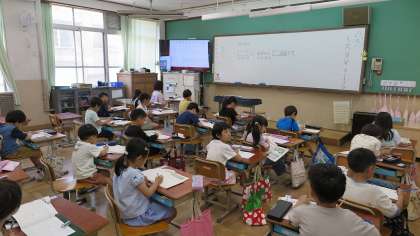1年生は、算数「なんばんめ」の学習をしています。今日は、教科書の挿絵に出てくる動物が右から何番目、左から何番目を考える学習でした。ノートにもしっかりと学習したことを書きうつすことができるようになってきましたね。