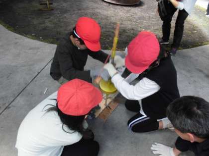 「火おこし」体験。