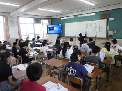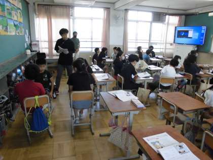 携帯電話のやり取りで夜更かしをしてしまい、体調を崩してしまった登場人物のことについて話し合いながら、節度ある使い方について考え合いました。