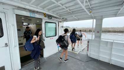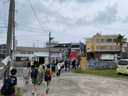 10分程で日間賀島到着です。名物のタコのモニュメントを見ながらビーチまで歩いて移動します。