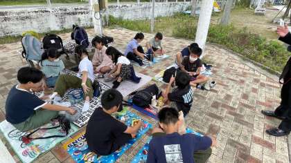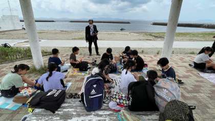 お家の人がお作ってれた愛情いっぱいのお弁当をいただいています。海を見ながらのお弁当は最高に美味しいですね。