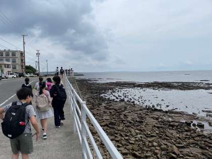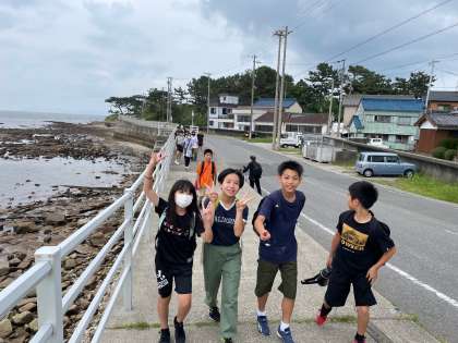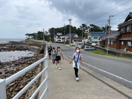 干物作り体験をするために海岸線を移動しています。
