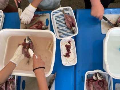 最初は気持ち悪いと言っていた子供達ですが、慣れてくると手際良く内臓をとり、綺麗に魚を干していました。普段できない体験ができました。