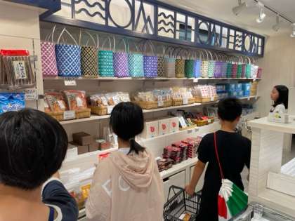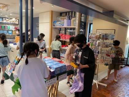 みんなが楽しみにしていたお土産タイムです。明日の名古屋での買い物も考えながらお土産を選んでいます。