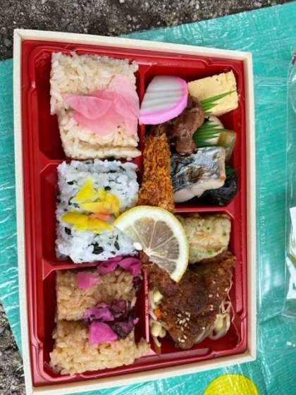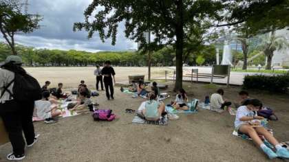 ますは昼食です。科学館前の公園でお弁当をいただいています。
