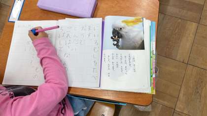 1年生は、国語「くちばし」の学習をしています。生き物クイズを作るために教材分にあるきつつき、おうむ、はちどりのくちばしの特徴について読み取りをしています。今日は、おうむについてどんなくちばしをしているのかみんなで考えました。