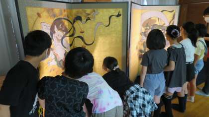 俵屋宗達筆「風神雷神図屏風」(複製)を見た瞬間、感動の声が聞こえてくるほどでした。