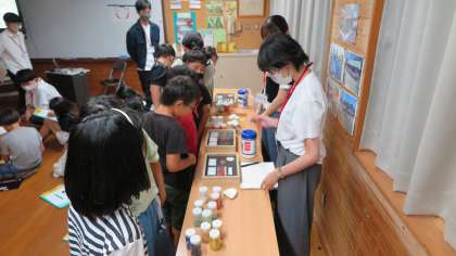 京都文化協会・京都国立博物館より講師の先生をお招きし、絵に描かれているものについて考えたり、昔の絵具について教えていただきました。