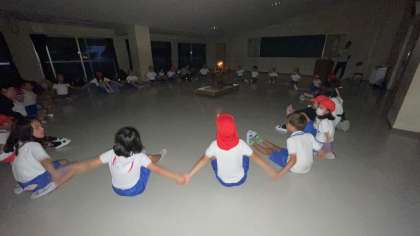 大いに盛り上がったキャンドルファイヤーもいよいよラストです。最後は、みんなで手をつないでスマイルを大合唱しました。