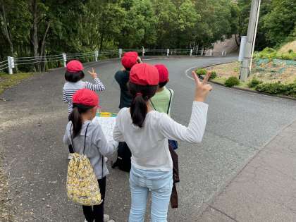 ウォークラリーでは、どっちにいけば良いのか?みんなで考えながら慎重に進みます。最後の難関、吊り橋を渡ってゴールを目指しました。