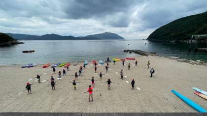 海岸に着くとさらにワクワクの気持ちが高まります。自分達の乗るカヤックに荷物を置いてパドルの操作方法を教えてもらいました。