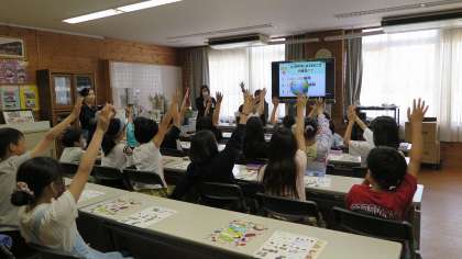 5年生では、今年も中央市場の京都青果さんのご協力の元、キノコを生産している会社の方々に来ていただきました。キノコの生産の様子やキノコの特徴についてクイズ形式で楽しく教えてもらうことができました。