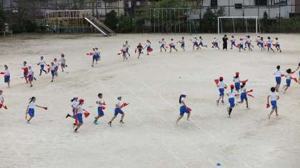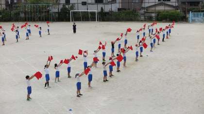 5・6年生が運動会練習を頑張っていました。今日は、入退場練習から徒競走の練習、そして集団演技の練習を行っていました。一つ一つの練習時間は短いですが、みんな集中して練習に参加してました。本番での高学年の息の合った演技がとても楽しみです。