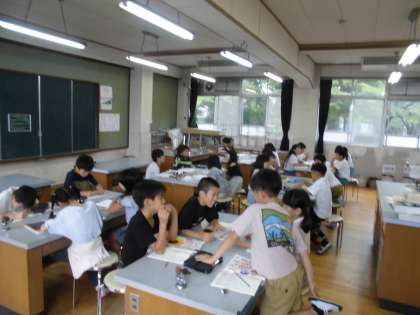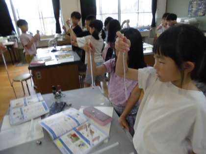 日なたと日かげではどんな違いがあるか、班ごとに話し合いました。日光があたっているかどうかや温かさ、明るさがちがうことを発表しました。今日は曇っていたので観察することはできませんでしたが、地面の温かさのちがいを調べるために、棒温度計の使い方を練習しました。ケースからの出し方や目盛りの読み方を確かめました。