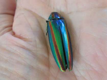 ナデシコの花を見ていたり、虫を捕まえてきて育てたりして自然に親しんでいる2年生。「砂場のとこにいたし、これあげる。」と、タマムシをくれました。もう死んでしまっていますが、とてもきれいな光沢です。通りかかった子らに、「これ知ってる?」と尋ねると、「タマムシ。」とかえってきました。自然の生き物を当たり前に知ってるのがうれしいです。