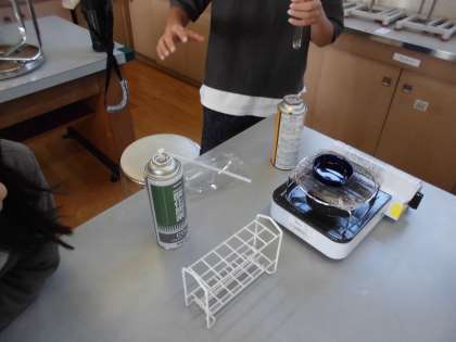 食塩水、炭酸水、アンモニア水、塩酸、石灰水のうち2つは前の時間に調べました。今日は、残りの3つの水溶液が何であるかを、熱したり、リトマス紙を使ったり、二酸化炭素を混ぜたりして調べました。それぞれがどの水溶液なのか決定してみると、前回の水溶液と同じ結果になったものがあり、もう一度、前回の水溶液Bを調べなおしたグループもありました。