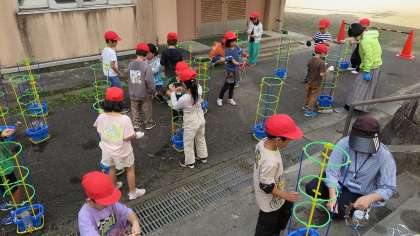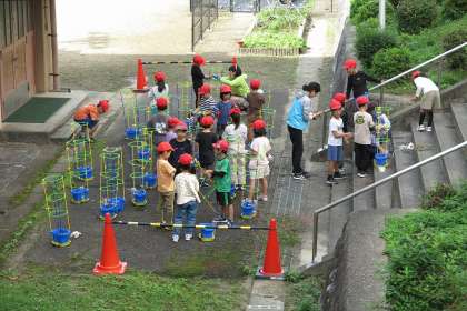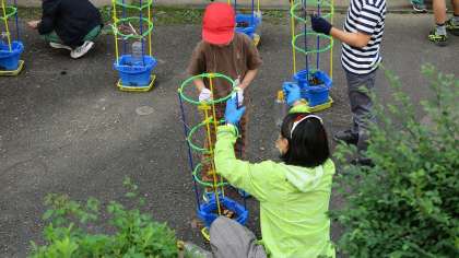 生活の学習で1年生は、これまで育ててきたアサガオの植木鉢から蔓を取り出し、くるくる回しながら輪っかを作りました。この後、飾りを付けてリースにするようです。長い間育ててきたアサガオを使っていろいろな体験ができました。