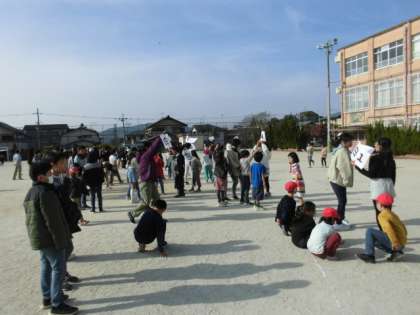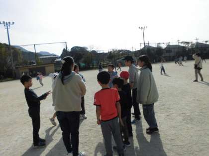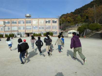 今日の昼休みは、「たかつかグループ」による縦割り遊びでした。「けいどろ」や「増えおに」「たからさがし」など、高学年の児童を中心に考えた遊びを、各グループで1年生から6年生まで全員で楽しみました。
