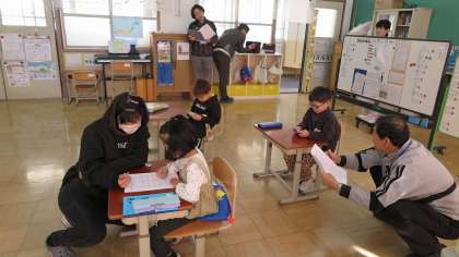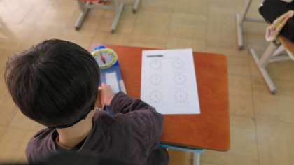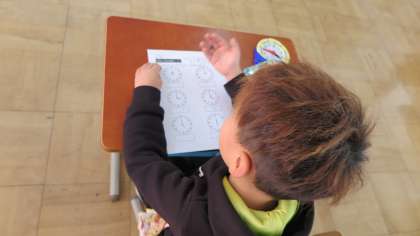 あすなろ学級は、算数「時計」の学習をしています。今日は、研究授業でたくさんの先生に学習の様子を見ていただきました。少し緊張気味でしたが、1年生は、何時何分の時刻の学習をしました。2年生は、何分間という時間の学習でした。時計の模型を動かしながらしっかりと考えることができていました。