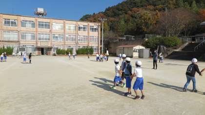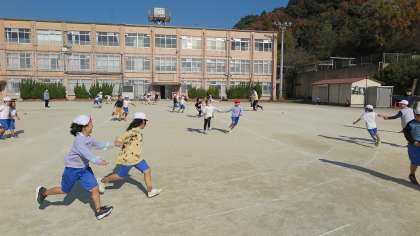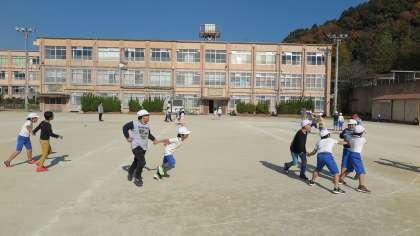 2年生は、体育「おにあそび」で広い運動場を駆け回っていました。遊びを通してルールを守ることの大切さを学び、そして体力を向上させています。