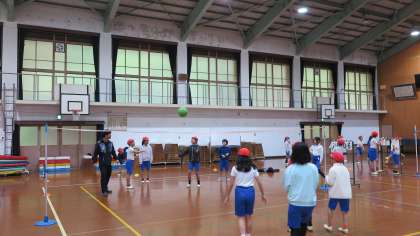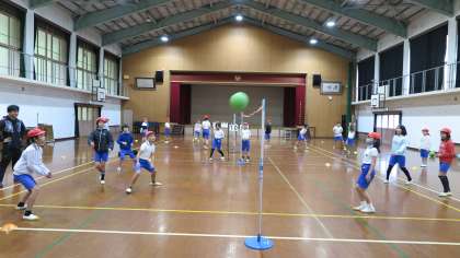 4年生は、体育の学習でソフトバレーボールをしています。まだまだ3回以内に相手のコートにボールを返すことができないので、つなぐことを目標に、地面についても返せたらOK等、ルールを変えながら試合を楽しんでいました。