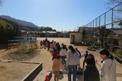 本日、地震を想定した一次避難訓練を実施しました。今週は防災週間と位置づけ、子ども達にはいつ訓練を実施するか知らせない訓練を行いました。いつもの避難訓練と違い、突然地震の放送が流れることや通れない場所を設定し、慌てず速やかに避難を行うことをめあてに実施しましたが、どの学年も真剣に訓練に参加することができていました。