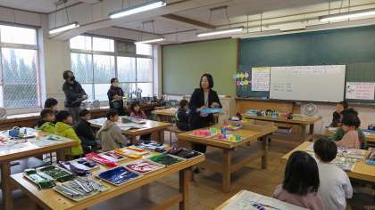 今日は、1年生の教室で図画工作科「ひらひら ゆれて」を題材にした校内研究授業が行われました。1年生にとっては、初めて校内のたくさんの先生方に学習の様子を見てもらうため、とても緊張した様子でしたが、時間がたつにつれて自分の作品を夢中になって作る姿を見せてくれました。また、友達の良いところを取り入れながら工夫して作品を仕上げることができていました。