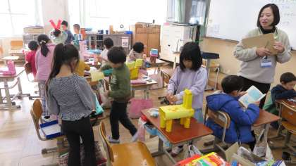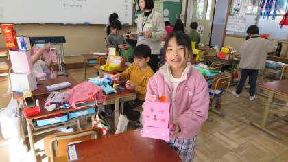1年生は、図画工作科『はこでつくったよ』の工作をしていました。お家から持ってきたいろいろな形や大きさの箱を組み合わせて動物や乗り物を作っていました。自分の作りたいものをしっかりとイメージしながら作業を進めていました。かわいい作品がたくさん仕上がっていました。