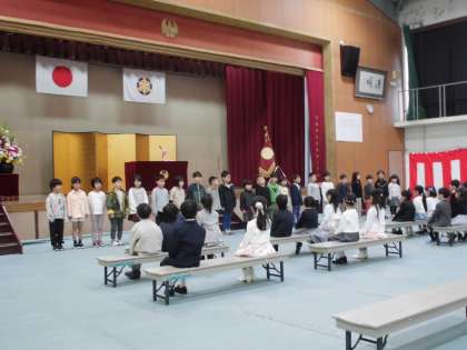 令和6年度の入学式を行いました。学校長は、式辞の中で、あいさつの大切さなど頑張ってほしいことを三つ、話をしました。1年1組とあすなろ学級の担任を紹介した後は、2年生がお迎えの言葉を元気よく発表してくれました。