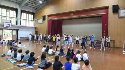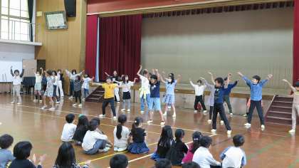 5年生は、大人ぶったダンスを披露しますと宣言し、オトナブルーのダンスを披露してくれました。