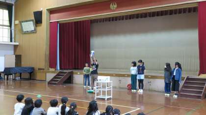 6年生は、落とし物の正しいとどけ方、お家での宿題の仕方、掃除の仕方の等、学校の約束を楽しい寸劇で教えてくれました。